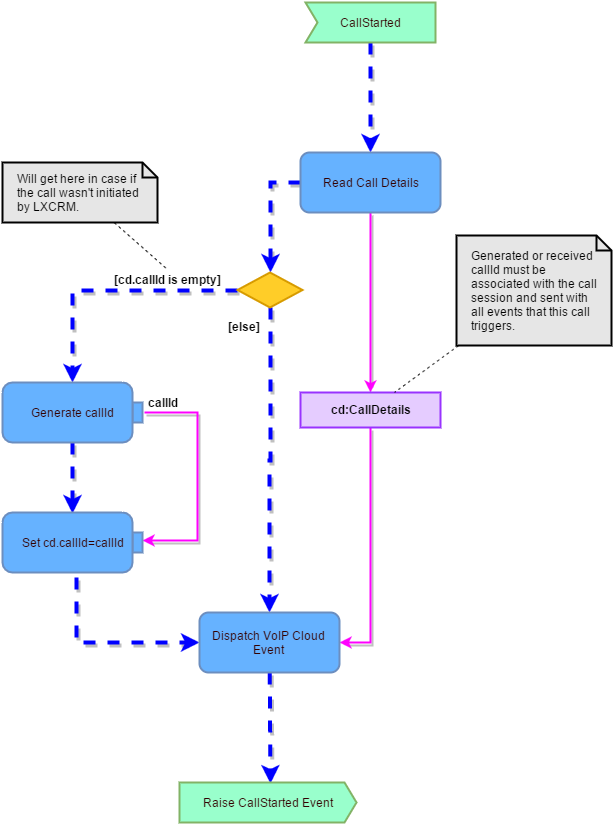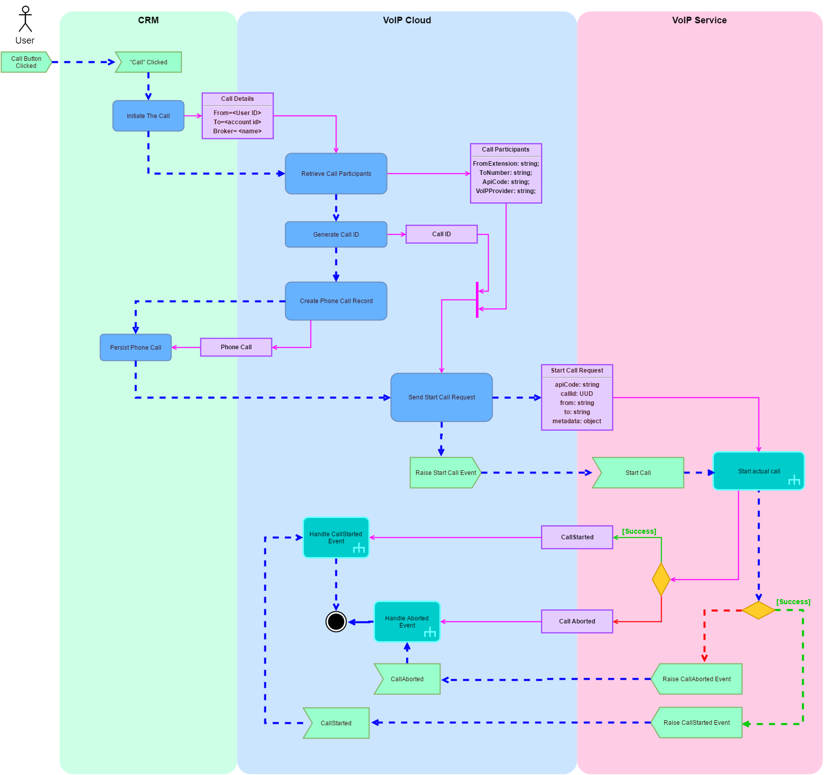 Please see the Activity Diagram (control and data flows) of StartCallRequest dispatch here